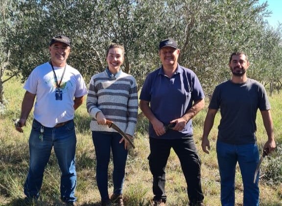 No último dia 17 de maio, a Prefeitura de Alegrete, através do Secretário de Agricultura, Pecuária e Desenvolvimento Rural (SAPDR), realizou visita técnica à Granja Todos os Santos, situada na localidade do Capivari. Na oportunidade, o secretário da SAPDR, Daniel Gindri, juntamente com a diretora de Extensão Rural, Gabriela Weiler, foram recebidos por Márcio Vaucher, proprietário e fundador da marca de azeite de oliva “Monte Santo”, que mostrou sua produção e o processo de poda das oliveiras, eventualmente realizado naquele dia.