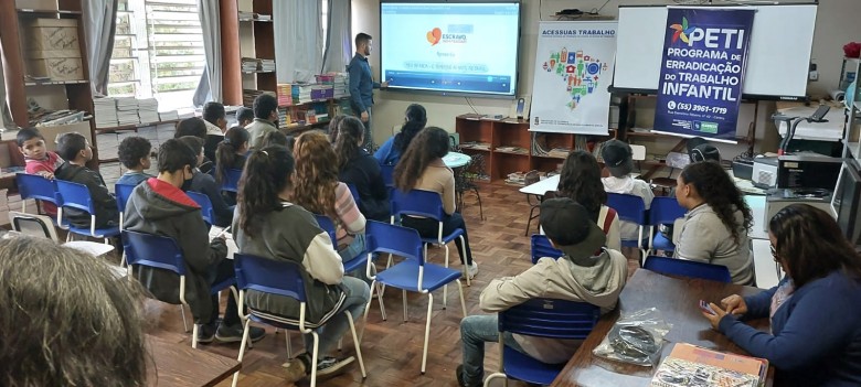 A Prefeitura de Alegrete, por meio da Secretaria de Promoção e Desenvolvimento Social, através do Programa de Erradicação do Trabalho Infantil (PETI) e do Programa de Promoção do Acesso ao Mundo do Trabalho – Acessuas Trabalho, realizou palestra informativa sobre a erradicação do trabalho infantil aos alunos da EMEB Princesa Isabel na última sexta-feira, 27. Na oportunidade, as atividades ficaram a cargo do coordenador do PETI, Adriano Soltau.