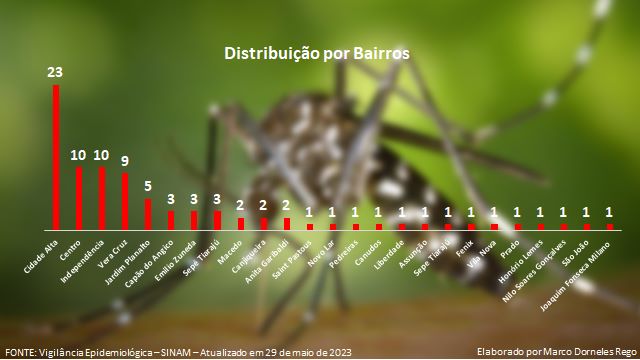 Alerta-se para o uso do repelente, principalmente nos bairros supracitados.