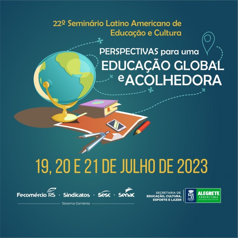 A Prefeitura de Alegrete, através da Secretaria de Educação, Cultura, Esporte e Lazer, em parceria com o Sistema Fecomércio – Sesc, realiza a 22ª edição do Seminário Latino Americano de Educação e Cultura entre os dias 19 e 21 de julho. O evento, que tem como temática “Perspectivas para uma educação global e acolhedora”, contará com palestras simultâneas em sedes diferentes como o CTG Farroupilha, a UNOPAR, o Centro Cultural Adão Ortiz Houayek e a URCAMP.