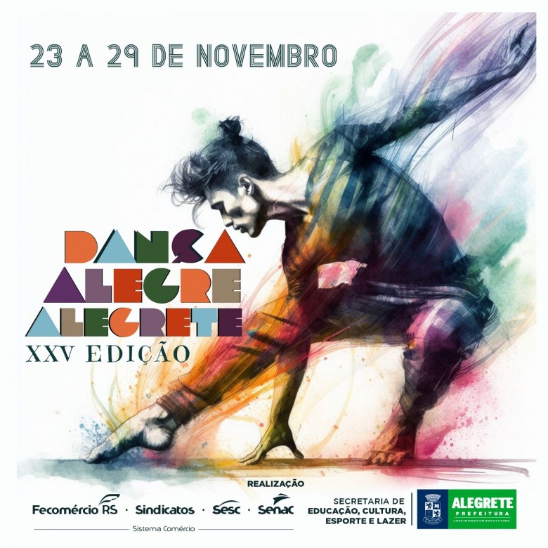 A Prefeitura de Alegrete, através da Secretaria de Educação, Cultura, Esporte e Lazer (Secel), em parceria com o Sistema Fecomércio – Sesc, promove a XXV edição do Dança Alegre Alegrete. O evento, criado e gestado pela coreógrafa Maria Waleska van Helden, nos anos 80, retorna ao município após um hiato de 8 anos, e tem como objetivos a formação de plateia crítica de dança, a democratização e o intercâmbio de ideias estéticas e referências entre os bailarinos do Rio Grande do Sul e do Brasil.