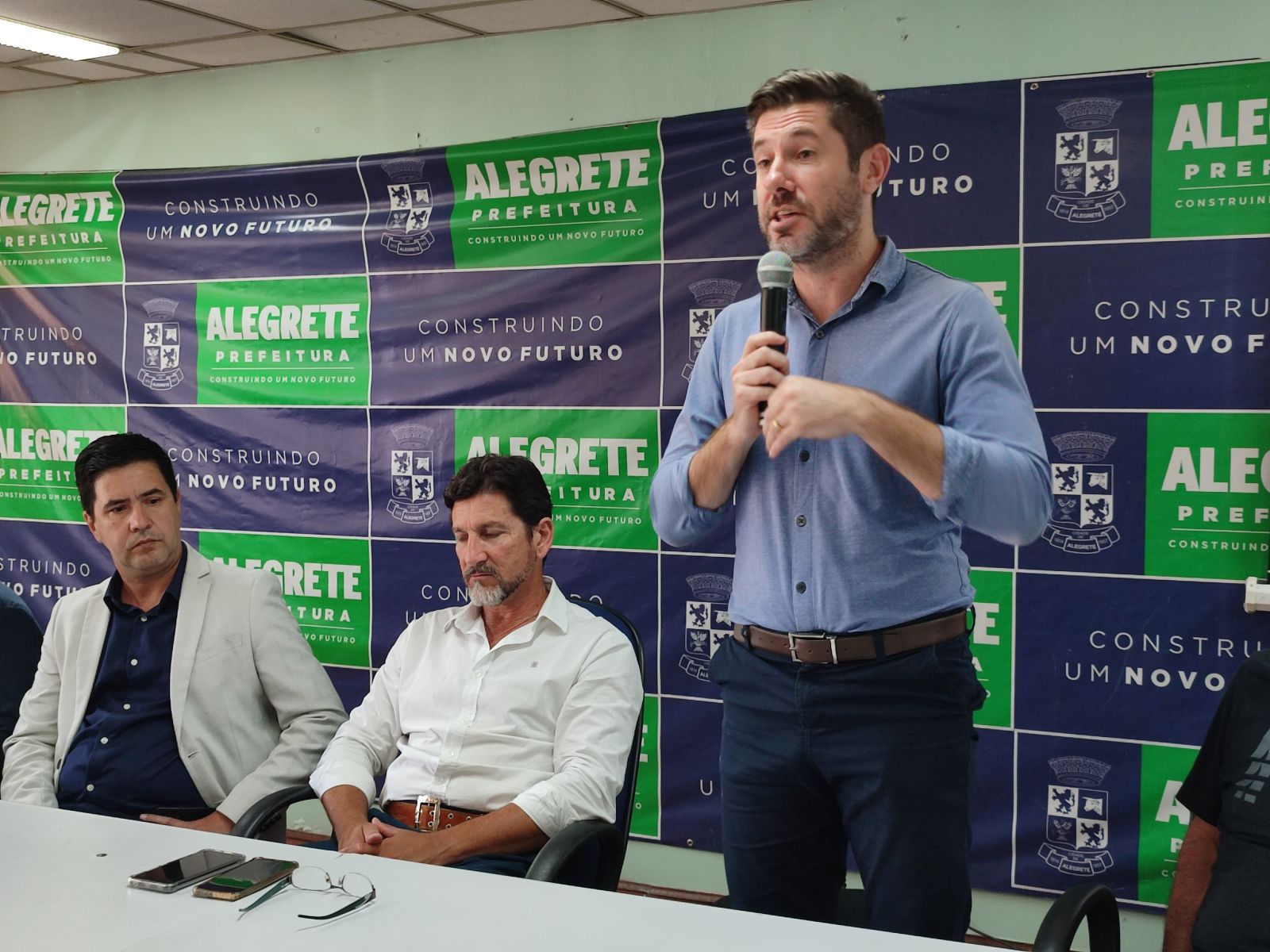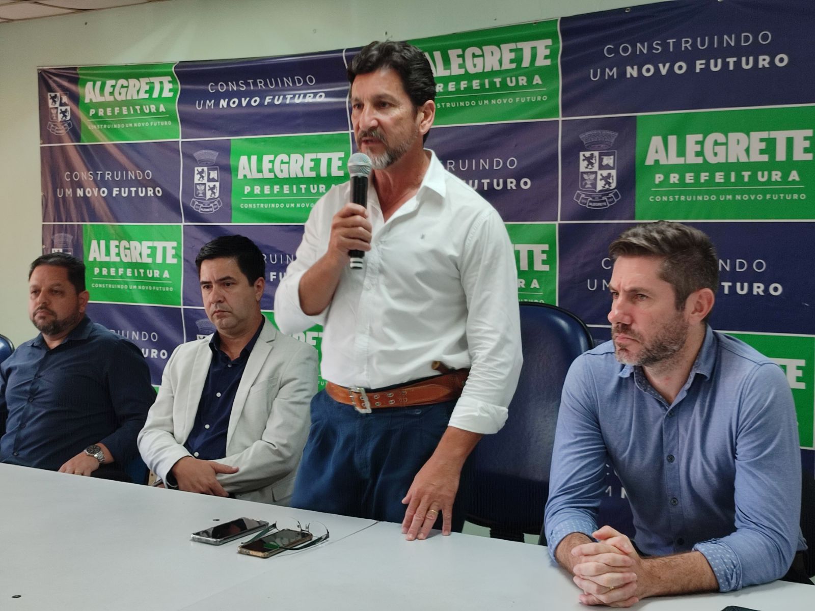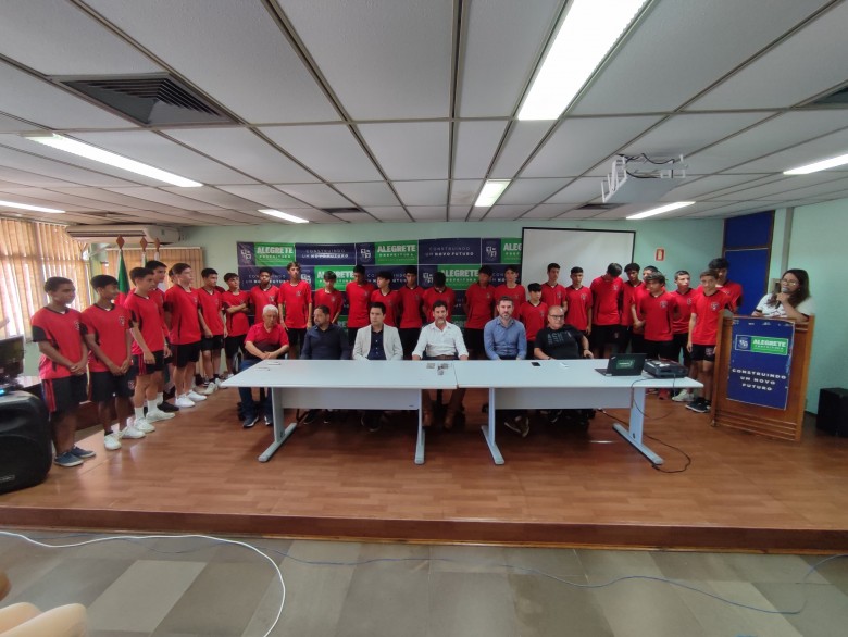 O prefeito Márcio Amaral, o vice-prefeito Jesse Trindade e as demais autoridades presentes, juntamente com toda a comissão técnica do Flamengo de Alegrete, apresentaram o elenco que vai disputar o torneio, e também salientaram a importância do EFIPAN para o município.