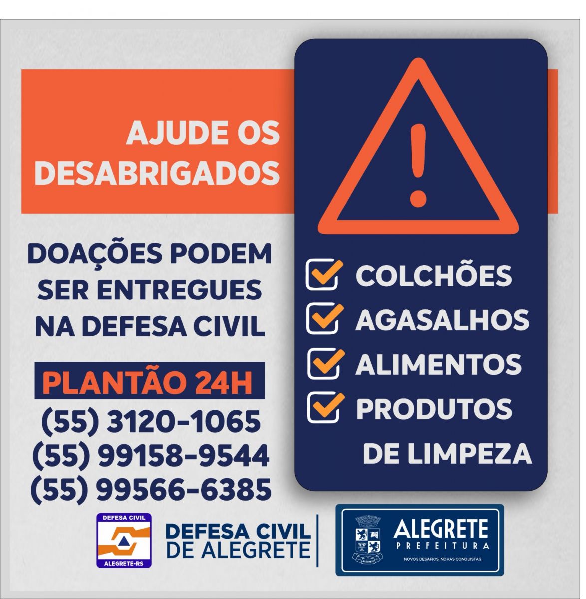 Em caso de emergência, ligue para a Defesa Civil Municipal: (55) 99158-9544 ou 3120 1069.