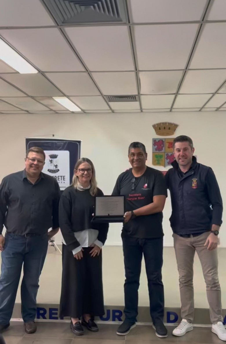 Na manhã da última terça-feira (28) no Centro Administrativo Municipal, a Secretaria de Administração foi formalmente reconhecida pelo seu destaque na campanha de doação de sangue "Secretaria Sangue Bom". A ação mobilizou os servidores municipais em um gesto de solidariedade que salva vidas.