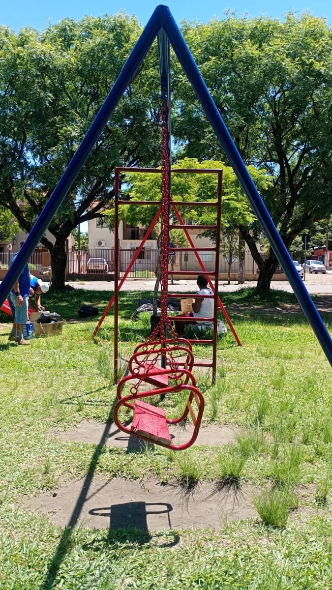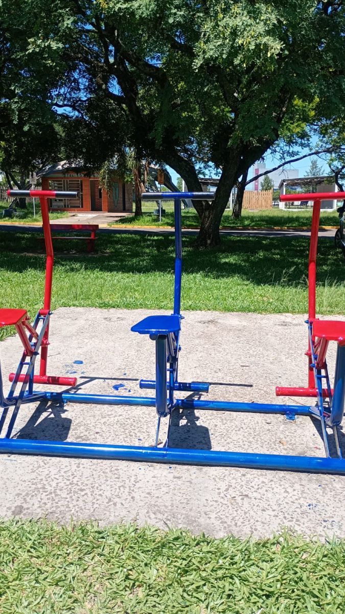 Também foram realizados serviços de pintura dos brinquedos e da academia, bem como a limpeza da praça na Av. Tiaraju em frente à Unipampa, assegurando a conservação do local e oferecendo um ambiente mais seguro e adequado para lazer, prática de atividades físicas e convivência da comunidade.